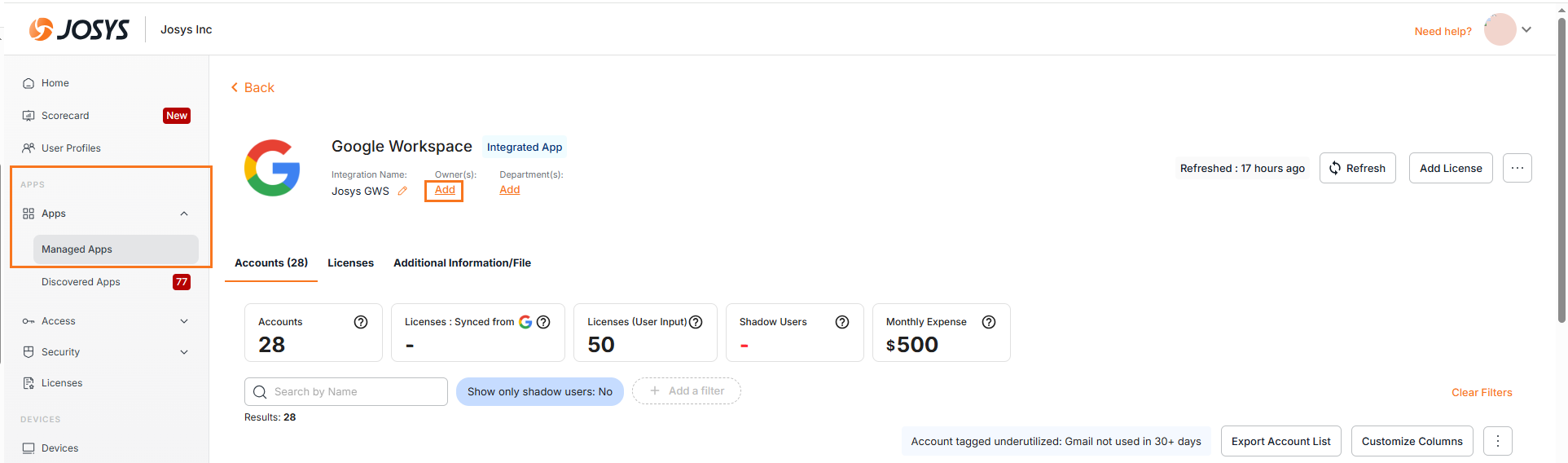 Step 1: Navigate to Managed Apps in Apps and open an app for which you want to add the app owner.